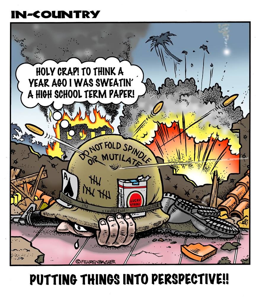 Phil enlisted in the Army in 1965 where he served for years in Vietnam. He became a graphic designer and has worked for the state of Oregon for 26 years. He retired in 2003 and started the Cartoon "In-Country". The cartoons reflect his experiences during his tour of duty in South Vietnam.